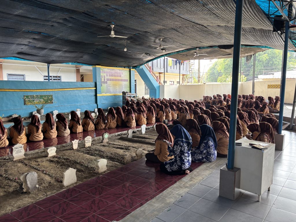 Suasana di kompleks maqbaroh tampak khusyuk dan penuh kekhidmatan. Para siswa dengan tertib mengikuti rangkaian doa untuk memohon kemudahan serta keberkahan dari Allah SWT dalam menghadapi ujian yang akan datang.